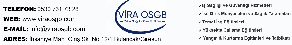 OSGB | VİRA OSGB İŞ SAĞLIĞI GÜVENLİĞİ | İHSANİYE MAH. GİRİŞ SK. NO:12/1 BULANCAK/GİRESUN | |