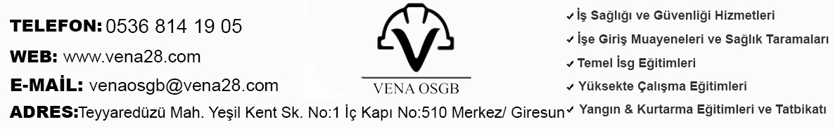 OSGB | VENA OSGB İŞ SAĞLIĞI GÜVENLİĞİ | TEYYAREDÜZÜ MH. YEŞİL KENT SK. NO:1 İÇ KAPI NO:510 MERKEZ/GİRESUN | |